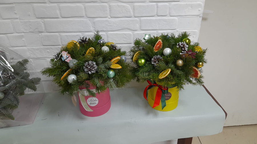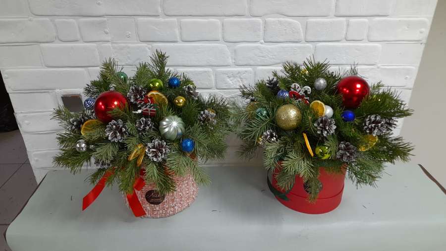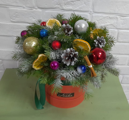 Новогодняя композиция со скидкой 50% в мастерской цветов «Лейка»