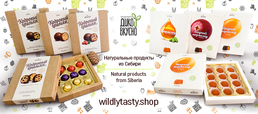Добро пожаловать в официальный интернет-магазин производителя брендов: Дико и Вкусно, Wild&Tasty, Fitcorn, крупнейшего в России производителя вкуснейших натуральных конфет (кедровый грильяж), мармелада (на основе дикорастущих ягод) , сладкой консервации, соусов, сушеных ягод, грибов маринованных и сушенных, иван чая и суперфудов.