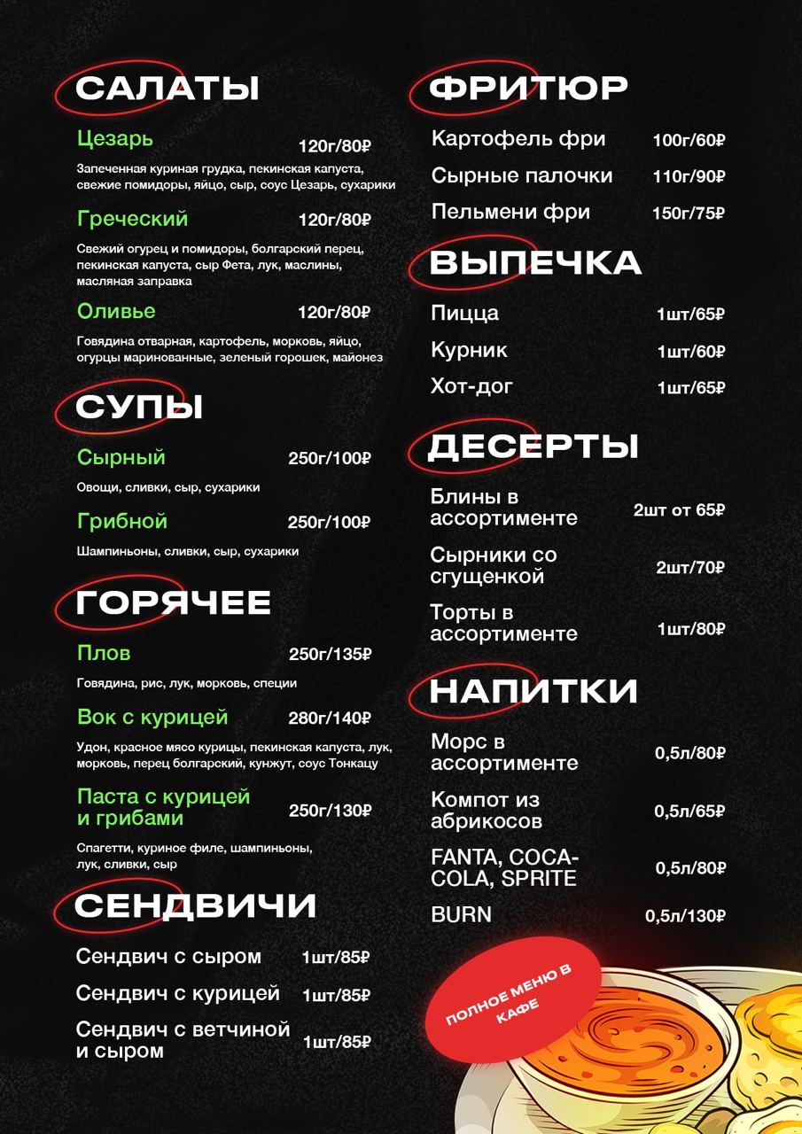 - всё меню можно посмотреть в приложении для iPhone и для Android