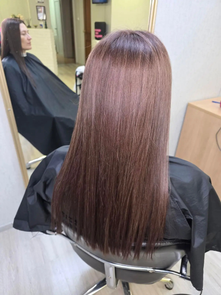 Однотонное окрашивание на длинных волосах – 4000 рублей вместо 8000