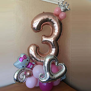 Цифра на подставке с героями и 3 фольговых сердечка или звёздочки — 820 рублей вместо 1640