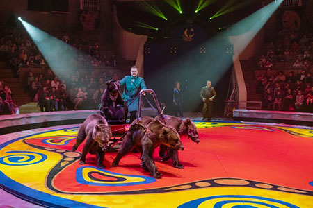 На арене появятся высочайшего класса акробаты, эквилибристы дрессированные кошки, собаки и даже медведи! Которые представят неожиданные, порой даже поражающие и самые красочные трюки.