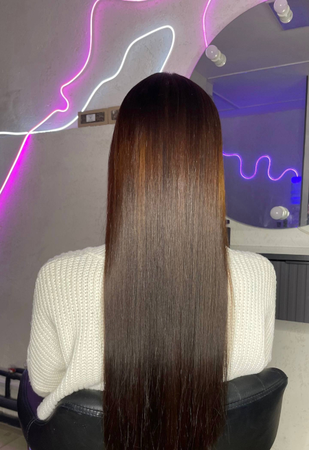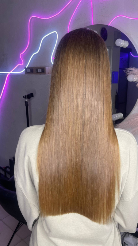 Кератиновое выпрямление - процедура делает волосы прямыми, блестящими, зеркальными.