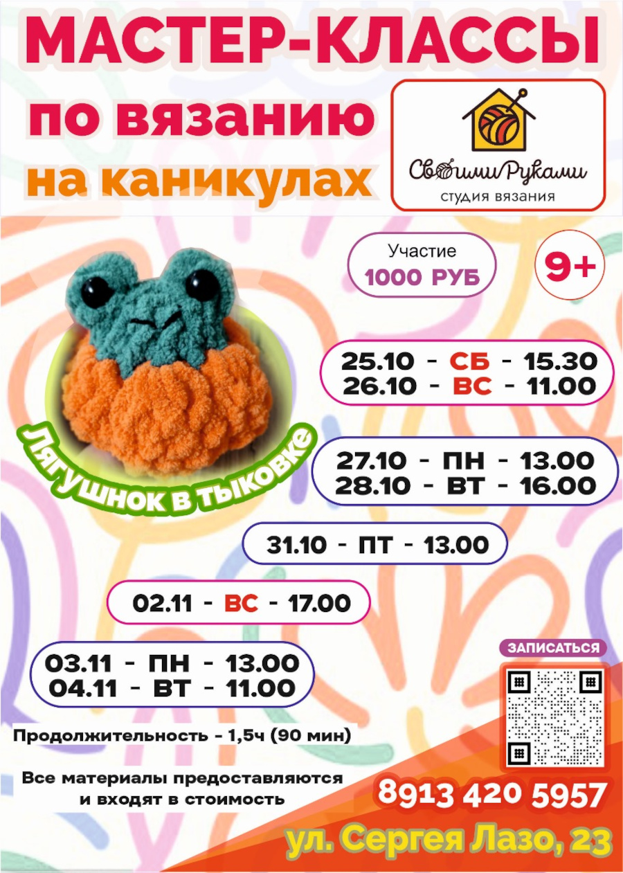 🎉 Мастер-класс по вязанию игрушки "Лягушонок в тыковке" для детей на каникулах! 🎉
